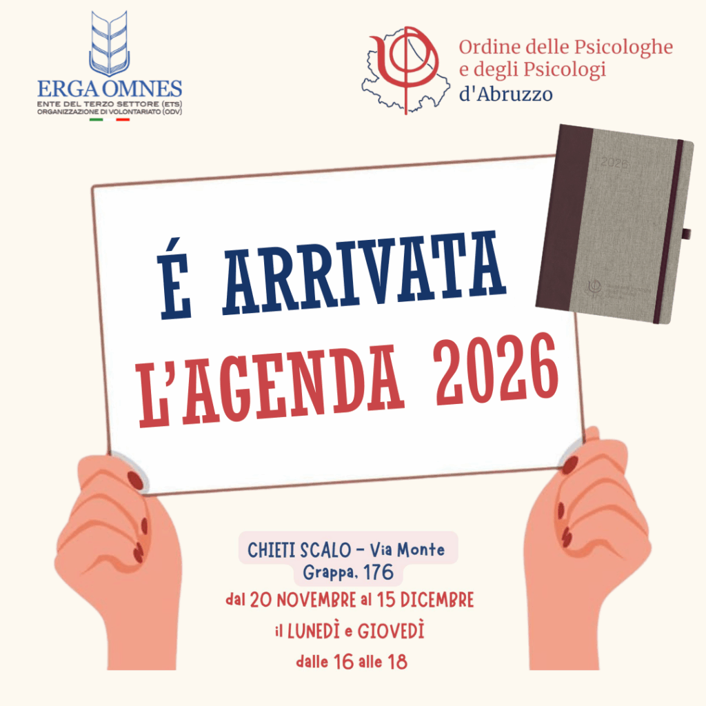 É ARRIVATA L'AGENDA 2026 16:00 – 18:0015 Dicembre 2025 Erga OmnesVia Monte Grappa, 176Chieti Scalo, Italia0871450291Visualizza luogoMappa Erga Omnes Leggi tutto Torna al calendario